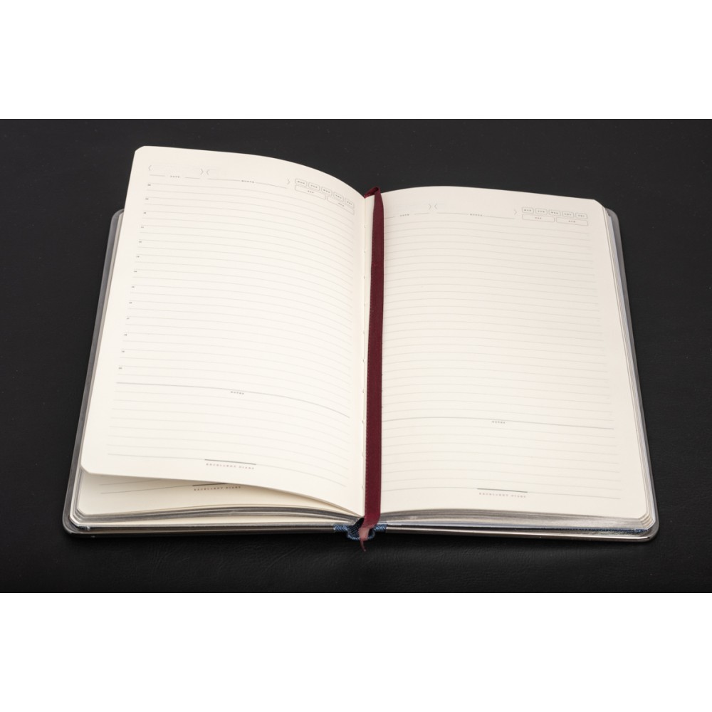 Оформить заказСиний ежедневник формата А5 доступен в твердом переплете. Эффектный рельеф обложки с благородным матовым эффектом напоминает натуральную кожу. Солидный и респектабельный образ создается с помощью металлической окантовки. Его блеск усиливается, чтобы соответствовать разрезу. Скругленные углы ежедневника подчеркивают изящество и элегантность. Недатированный блок состоит из 272 переплетенных страниц. Бежевая бумага снижает усталость от работы. Плотность листа 70г/кв. Обновлена справочная информация (единицы измерения, часовые пояса, номера телефонов и т. д.) на 19 страницах и добавлены тонкие шелковые закладки для более удобной навигации. Вы можете заказать тиснение на обложке этого дневника.